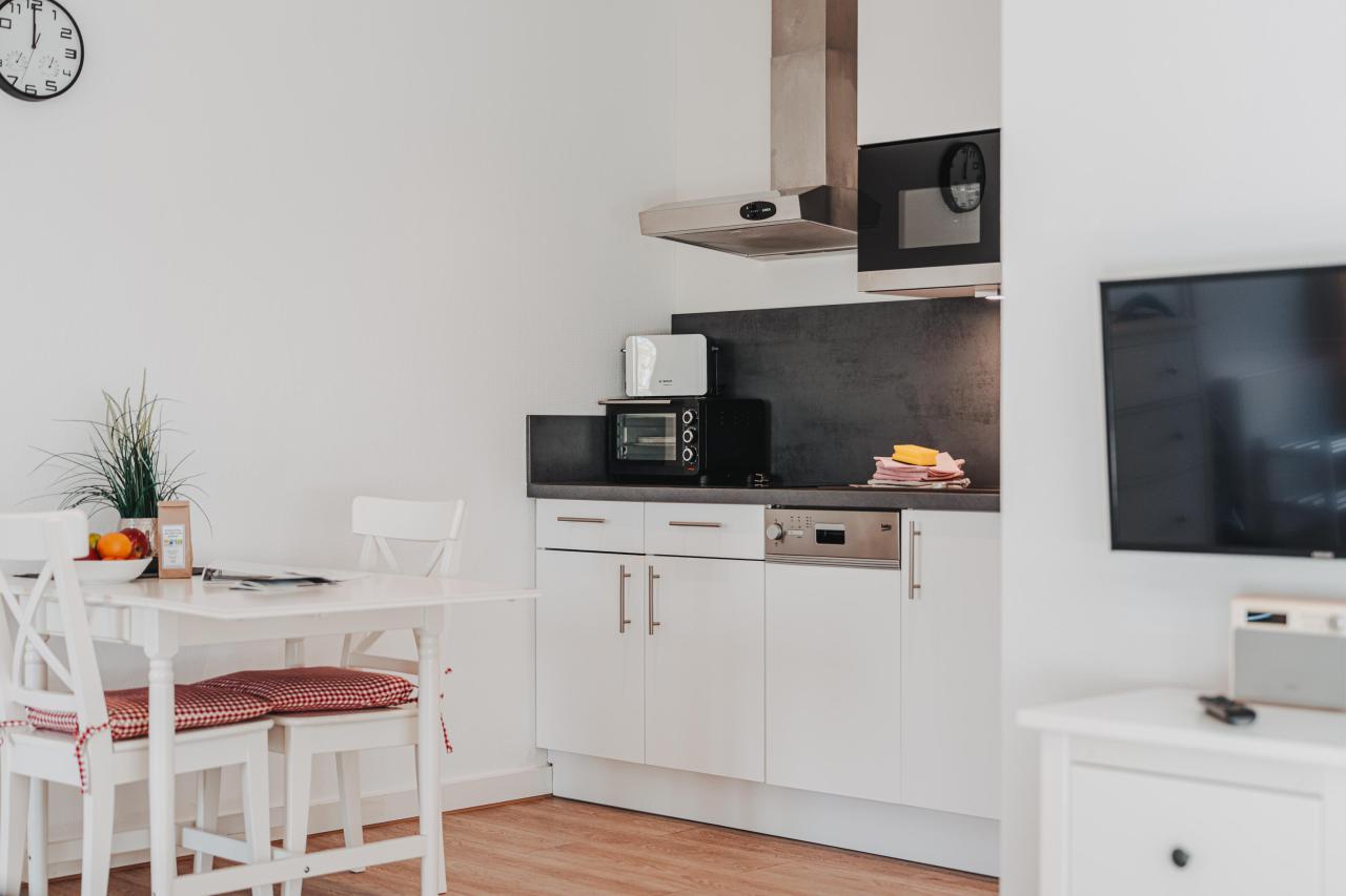 Die Wohnung verfügt über ein gemütliches Schlafzimmer, den hellen Wohnbereich mit Küche sowie einem modernen Badezimmer.
